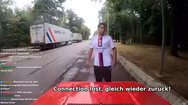 02:39:24Nach mehr als zwei Stunden Fahrt wurde eine geplante Essenspause an einem McDonald's eingelegt. Während der Pause, die gleichzeitig als Gelegenheit für Fotos mit der Finnland-Flagge diente, kam es zu einer technischen Katastrophe: Die USB-C-Ladebuchse der Hauptkamera wurde durch ein Driften beschädigt. Dies führte zu ernsthaften Bedenken bezüglich des weiteren Verlaufs des Streams, da die Akkukapazität der nun nutzlosen Kamera nur noch bei 74 % lag.