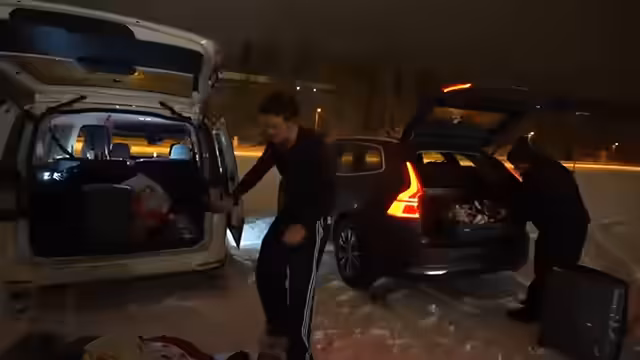02:53:27Nach der technischen Krise und der Essenspause setzte sich die Fahrt fort. Der Stream informierte die Zuschauer über die verbleibende Distanz und die Pläne für das bevorstehende Skifahren. Alle Teilnehmer mussten sich für die Aktivität ausrüsten, da die meisten keine entsprechende Ausrüstung besaßen. Es wurden zwei Paar Socken und mehrere Hosen als notwendig erachtet, um der Kaltwind im Skigebiet zu trotzen.