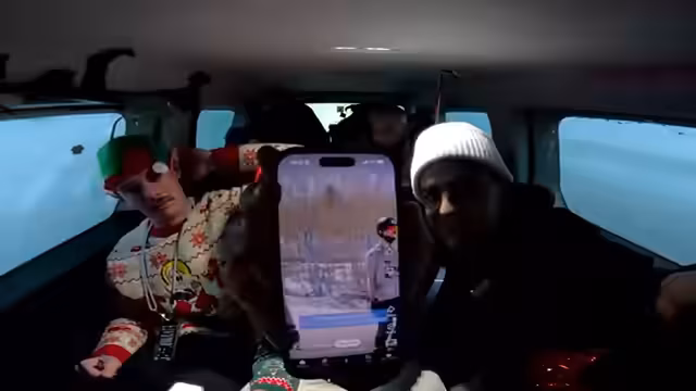 03:11:35Die Gruppe ist bei der Essensausgabe im Auto und bereitet sich auf das Skifahren vor. Marc erwähnt, dass er Snowboard fahren wird. Die Zeit ist knapp, da die Skigebiete um 19 Uhr schließen. Adam beschreibt einen seltsamen Körperzustand, bei dem er beim Essen ein Aufstoßen hat. Die Stimmung ist gelassen, und die Gruppe überlegt, wer noch etwas Bestellt haben möchte.