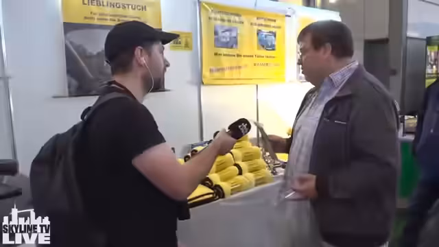 01:31:25Ein weiterer zentraler Punkt der Messebesichtigung ist die Vorstellung von hochwertigen Reinigungsprodukten. Im Mittelpunkt steht ein spezielles Mikrofaser-Tuch, das für 100% streifenfreie Reinigung von Autoscheiben, Spiegeln und Duschkabinen wirbt. Der Aussteller demonstriert die Funktionsweise des Tuches und betont dessen Saugkraft und Waschbeständigkeit. Das Produkt wird bewusst nicht als Massenware, sondern als Premium-Alternative zu Billigprodukten positioniert und findet offenbar großen Anklang bei den Messebesuchern.