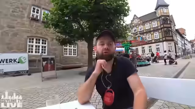 00:17:22Der Stream beginnt mit technischen Problemen durch Kopfhörerverbindung und kurzer Verzögerung. Der Streamer befindet sich in Witzenhausen und stellt das Kirschkern-Weitspucken als offizielle Weltmeisterschaft vor. Es werden verschiedene Disziplinen wie Männer-, Frauen- und Familienwettbewerbe erwähnt. Die Veranstaltung wird als fröhliches Familienfest mit lokaler Atmosphäre beschrieben, bei dem man sich bis 13 Uhr noch anmelden kann. Der Streamer erkundet die Umgebung und findet Probestände zum Übenspucken.
