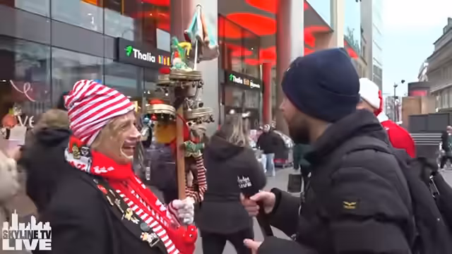 00:17:06Der Livestream beginnt mit dem Eintreffen des Streamers in der Kölner Innenstadt. Er stellt sein Kostüm vor, das aus einer Kappe mit dem Aufdruck 'Party People' besteht und ein Statement seiner Herkunft und Karnevalsleidenschaft sein soll. Trotz des späten Starts um 10:30 Uhr und des eisigen Wetters ruft er die Zuschauer auf, die Atmosphäre mitzuerleben und bittet um interaktive Abstimmungen. Er erwähnt, dass der Stream ein Angebot für diejenigen ist, die nicht vor Ort sein möchten, und gibt einen ersten Ausblick auf das Programm des Tages.