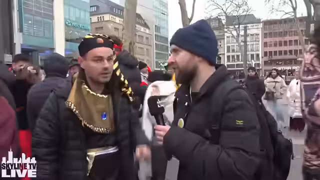 02:04:39Es finden zahlreiche spontane Interviews und Gespräche mit Karnevalbesuchern statt. Ein Besucher aus dem Norden wird interviewt, der seinen Stadtteil für Hamburger hält. Auch ein Forscher aus dem Badischen Land wird vorgestellt, der die Kölner Partykultur erforschen will. Ein Security-Mitarbeiter wird interviewt und berichtet von der ruhigen Einsatzlage. Diese Interaktionen prägen das Geschehen vor Ort maßgeblich.