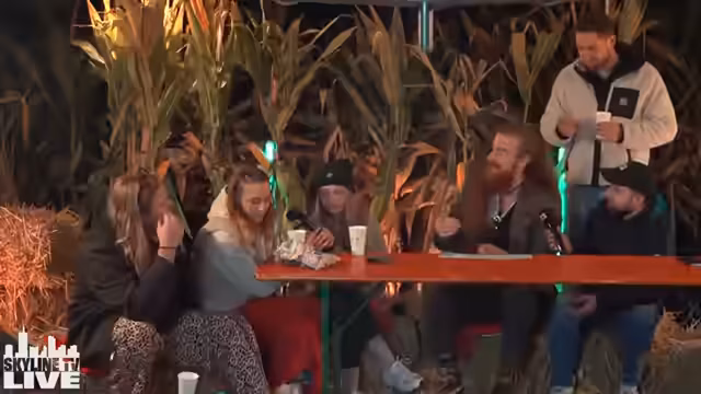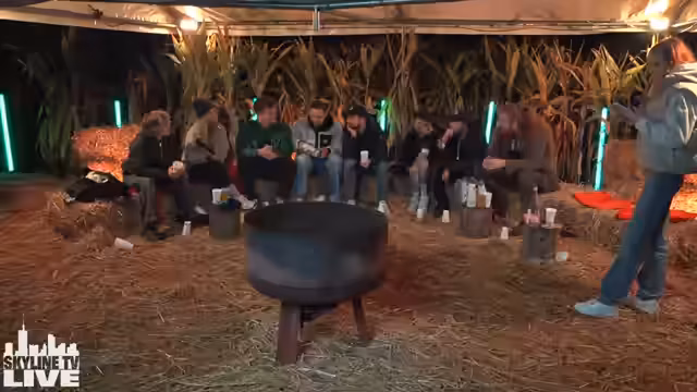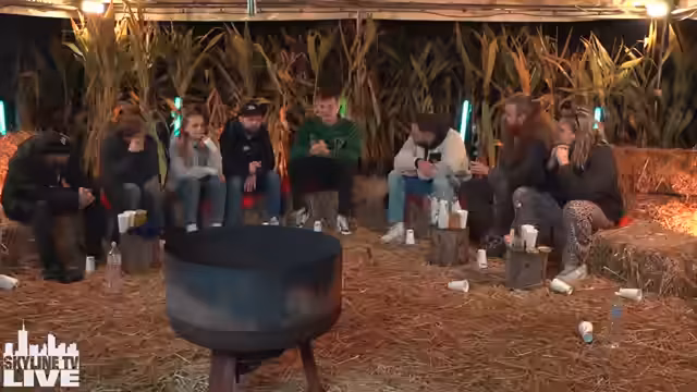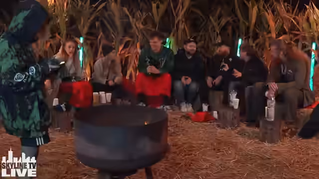 01:10:27Neben der Organisation finden mehrere lockere Gespräche statt. Ein Teilnehmer, der als hauptberuflicher Mentalist angekündigt wird, wird nach seinem Umgang mit dem Druck gefragt und antwortet nonchalant. Es kommt zu einem längeren, teils verwirrenden Gespräch über Fantasy-Welten wie Game of Thrones, Harry Potter und Elden Ring. Zudem werden persönliche Anekdoten geteilt, wie Noahs erfundener Bandscheibenvorfall beim Auszug und seine negativen Erfahrungen bei einem Bungeesprung, der ihm eine Sprangangst eingebracht hat.