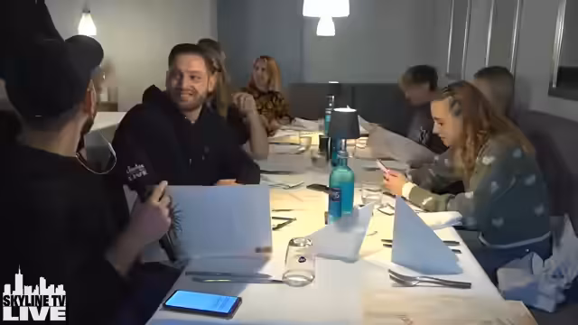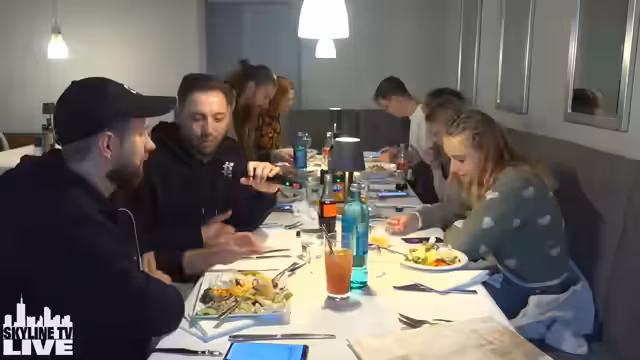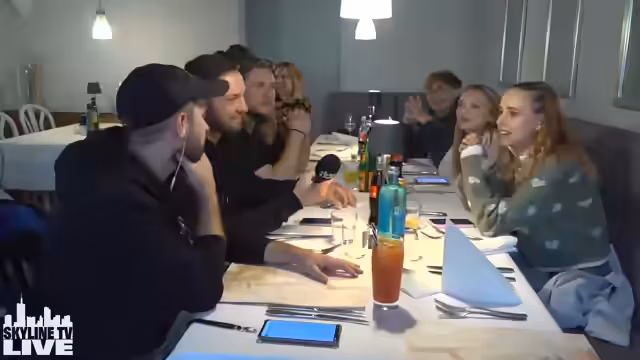 00:31:51Die Zusammenführung der Runde wird durch die späte Ankunft von Noah Z. begleitet, die durch eine dramatische und absurde Anreise geprägt war. Er verpasste seinen Zug, musste mit dem E-Scooter durch Wälder und ein Minenfeld hindurch anreisen und kam schließlich extrem verspätet an. Parallel dazu entwickeln sich persönliche Gespräche am Tisch, insbesondere über Essgewohnheiten. So stellt sich heraus, dass Lisa Küppers kein Gemüse mag, was für großes Erstaunen sorgt, und es gibt eine ausführliche Diskussion über Vorlieben zwischen Nudeln und Reis sowie das Verhältnis von Lisa Küppers zu einem auf Mallorca entstandenen Song.