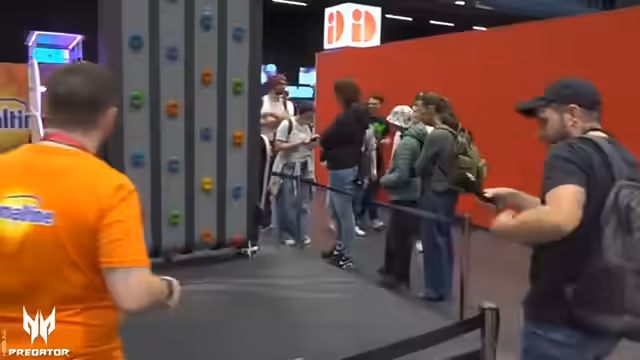 00:40:37Die Entdeckungstour führt das Team durch Bereiche, die am Vortag noch nicht besucht wurden. Der Haupteingang führt sie zur Bühne, wo andere Streamer wie Adi Toro und Papa Platte im blauen bzw. roten Chirt zu sehen sind. Anschließend wird der Bereich mit dem Nintendo-Stand und der Content Creator Area erkundet. Ein weiteres Highlight ist der Stand eines Berkeley-Flugsimulators, bei dem man mit Wind und Bewegung durch Ringe fliegen kann. Dies wird als sehr immersives und anspruchsvolles Erlebnis beschrieben.
