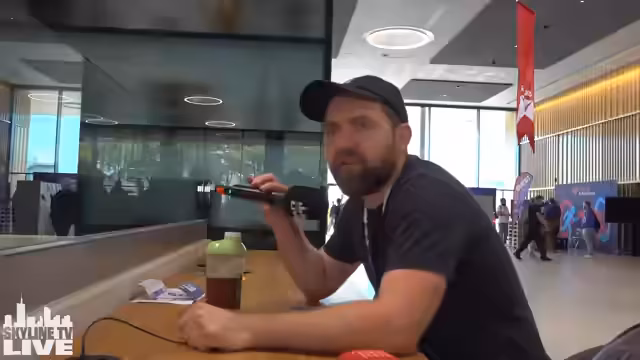 07:01:55Der Streamer wechselt in den Bereich der Bühne, wo gerade ein Musiker namens Barrex Music live mit Mario-Klängen auftritt. Er bemüht sich, dessen Chat aufzufüllen und stellt eine Verbindung zum Künstler her, der ihm zum Schluss ein Herz schickt. Anschließend besucht er die Content Creator Lounge, wo er mit anderen Creatern wie Tom aus Frankfurt spricht, der Interviews und Vlogs macht. Der Streamer bewirbt seine eigene Convention Plux Hyä und unterhält sich über die Unterschiede zwischen der HeroFest und der größeren Fantasy Basel.