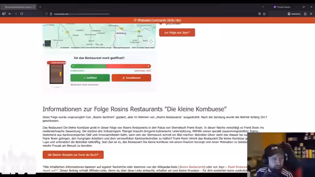 06:54:12Abschließend wird die Nachhaltigkeit des Umbaus hinterfragt. Die vom Streamer als "Rosinen-Effekt" bezeichnete, anfängliche Umsatzsteigerung von 20% hielt nur vier Wochen an, bevor die Besucherzahlen wieder auf dem ursprünglich niedrigen Niveau lagen. Oliver Brösel verließ die Kantine und nahm eine angestellte Stelle in Bremen an. Der Streamer resümiert, dass das TV-Format zwar kurzfristig helfen kann, aber oft nicht die tiefgründigen Probleme nachhaltig löst.