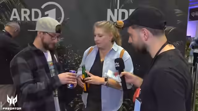 03:34:56Der Streamer besucht verschiedene Stände bei Polaris und spricht mit Besuchern. Dabei geht es um Fotos, Favoritenstände und persönliche Begegnungen. Ein Junge mit Brille drängte sich unbeabsichtigt in ein Foto, was bei dem Streamer Bedenken auslöste, da er sich nicht traute, ihn darauf anzusprechen. Besucher teilen ihre Erlebnisse und favorisierte Bereiche der Messe, wie den Stand mit den Mauspads.