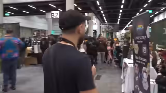 00:19:39Der Streamer beschreibt die Polaris-Messe als rustikal industrialisiert mit Container-Elementen. Er bemerkt die Präsenz von Automaten für Pokémon-Karten, die ohne Bedienung funktionieren, was er als interessant ansieht. Auch erwähnt er technische Aspekte wie Akkuprobleme und die ständige Notwendigkeit von Akku-Checks. Der Streamer wechselt zwischen verschiedenen Bereichen der Messe, wobei er den Besuchern begegnet und Kurzinterviews führt.