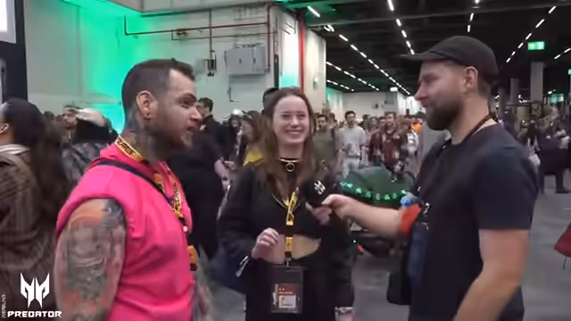 04:29:36Auf der Messe wartet eine große Horde-Community auf Lisa Grimm und Marvin Clifford, die in 33 Minuten erwartet werden. Einige Besucher warten seit einer Stunde, obwohl das Event erst in einer halben Stunde beginnt. Es wird erwähnt, dass viele schon vorne positioniert sind und die Community als sehr engaged beschrieben wird. Reporter erkundigt sich vor Ort und berichtet von der Atmosphäre und den Aktivitäten rund um die Wartenden.