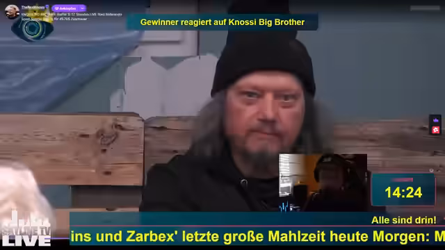02:04:32Eines der irritierendsten Gefühle im Big Brother Haus ist die Ungewissheit, wann man im Stream zu sehen ist, was eine ständige psychologische Belastung darstellt. Ein Lämpchen, das den Online-Status anzeigt, hätte die Situation für viele Teilnehmer erleichtert. Peter wird als liebenswerter und herzlicher Mensch beschrieben, der trotz seiner naiven Art Sympathien gewinnt. Seine Fähigkeit, über sich selbst zu lachen, wird positiv hervorgehoben. Es wird spekuliert, dass Peter aufgrund seiner Persönlichkeit ein Anwärter auf den Gewinn sein könnte, da er durch seine Authentizität überzeugt. Die Teilnehmer sind gespannt auf einen Überraschungs-Tagesgast und die weitere Entwicklung der Dynamik im Haus.