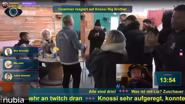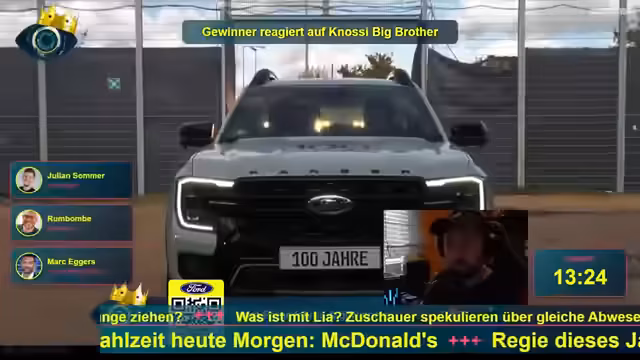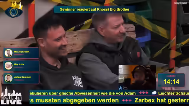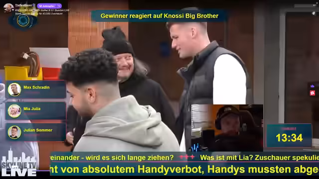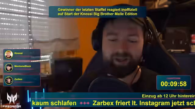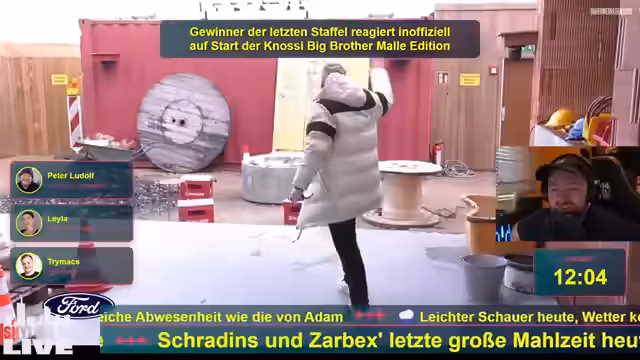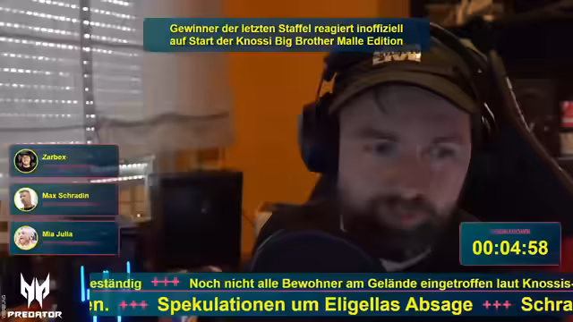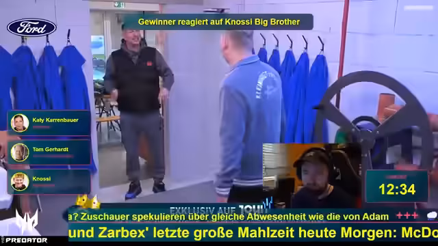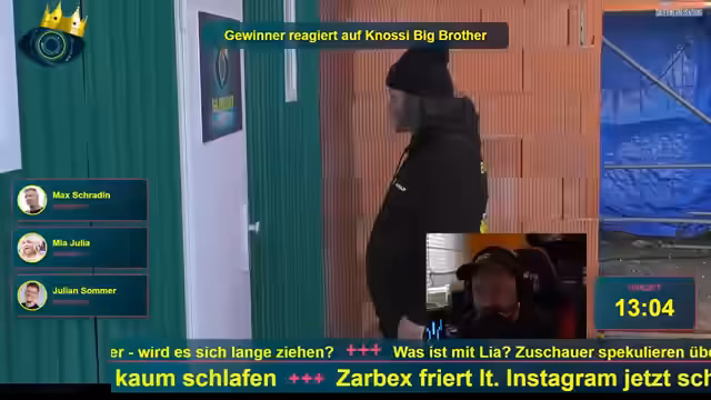 02:51:36Ein Raid von 'Elf Hirni' mit 370 Zuschauern leitet eine neue Phase des Streams ein. Der Streamer begrüßt die neuen Zuschauer und gibt einen kurzen Überblick über die aktuelle Situation im Big Brother Haus, einschließlich der Baustelle, der schwierigen Toiletten und des luxuriösen Bereichs für drei Personen. Es wird über Knossis mögliche Lebensmittelunverträglichkeit und die Schwierigkeit, im Chat zu kommunizieren, diskutiert. Viele Teilnehmer äußern den Wunsch, im 'kalten' Bereich zu bleiben und die Herausforderung anzunehmen, anstatt den Luxusbereich zu wählen. Die technische Herausforderung, mehrere Mikrofone und Kameras zu koordinieren, wird beleuchtet, da die Bewohner oft gleichzeitig reden oder die Position wechseln. Der Streamer verabschiedet sich und kündigt an, bei Bedarf spontan wieder online zu gehen, insbesondere bei technischen Problemen oder für Halloween-Streams mit Marc Eggers.