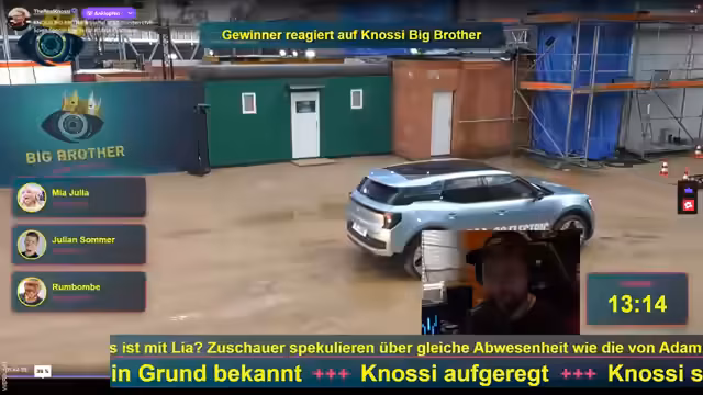 00:52:15Der Streamer thematisiert die Abwesenheit von Monte, der sich auf Minecraft konzentriert, und lobt die Hingabe von Zabex und Schradin, die trotz ihrer Verpflichtungen bei Craft Attack die gesamte Zeit für Knossi Big Brother opfern. Er betont, dass dies eine große Anerkennung verdient. Die Bauprojekte im Haus werden als lustig beschrieben, und Knossi überlegt, wie lange er überbrücken muss, bis der nächste Kandidat kommt. Er fragt sich, wer das Haus sauber machen wird. Es kommt zu einem Umschalten auf das gesponserte Auto, das den ersten Kandidaten bringt. Knossi redet weiter, obwohl er nicht mehr auf Sendung ist, was zu einer humorvollen Situation führt. Die Fahrerin des Autos wird als Produktionsleitung identifiziert. Schradin ist der erste Kandidat, der nach Knossi einzieht. Der Streamer ist gespannt, wie sich Schradin von der Zabex-Connection lösen und sich auf die anderen, unbekannten Teilnehmer einlassen wird. Die verzerrte Stimme des Sprechers wird kommentiert, und der Streamer hofft, dass die Regie daran arbeitet. Er glaubt, dass es dem Format guttun würde, wenn Schradin und Zabex sich trennen und nicht immer nur zu zweit agieren würden.