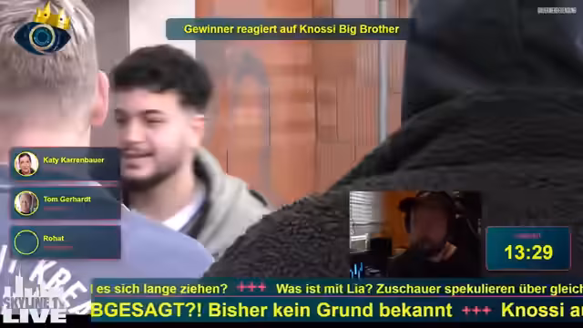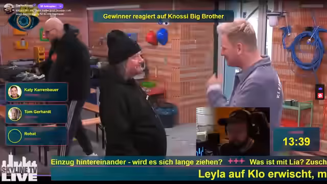 01:56:11Es kommt zu einem peinlichen Moment, als versucht wird, die Toilette zu zeigen und dabei versehentlich Leyla erwischt wird. Obwohl nichts zu sehen war, sorgt der Vorfall für Aufregung und Entschuldigungen. Es wird die Funktionalität der Toilettentür und des 'Besetzt'-Schildes diskutiert, da es zu Missverständnissen kommt. Im Vergleich zu normalen Big Brother-Staffeln hat der Sprecher hier extrem viel Einfluss und greift in die Geschehnisse ein, während in anderen Staffeln die Bewohner mit solchen Situationen allein gelassen würden. Es wird auch über die schnelle Verfügbarkeit von Tageszusammenfassungen auf Join und die unterschiedlichen Schnitttechniken für Knossis YouTube-Kanal gesprochen, die verschiedene Perspektiven bieten könnten, auch bei sensiblen Momenten wie dem Toiletten-Missgeschick.