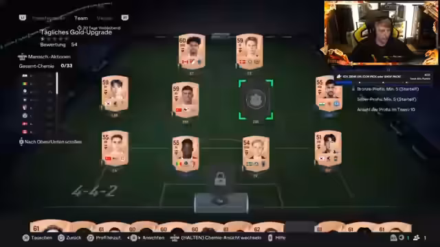 01:10:14Es werden Packs geöffnet, darunter Premium-Silber-Profi-Sets und Leih-Profis-Belohnungspacks, um SPCs abzuschließen und für den Team of the Season Start zu grinden. Es gibt viele Ziele, darunter das Spielen von Rush für EP und möglicherweise das Erspielen von Maldini, obwohl dies schwierig wird. Es wird erwartet, dass man relativ schnell ein starkes Team zusammenstellen kann, ähnlich wie bei Bros Gear. Es wird überlegt, ob man noch eine zusätzliche Karte mitnehmen soll, aber der Fokus liegt zunächst auf den Anfangspacks. Das Ziel ist es, viele Münzen zu verdienen. Einzelne Karten werden auf ihren Wert geprüft, um sie gegebenenfalls zu verkaufen und das Kapital aufzustocken. Es werden Spieler aus den Packs gezogen, darunter Reina mit einem Rating von 85. Die Frage ist, wie das Evo-Team gestaltet werden soll, ob nur First Owner Evos verwendet werden dürfen. Am Anfang zählt es, Münzen zu generieren. Der erste Walkout bleibt eine Vereinslegende, auch wenn der Account nur sieben Wochen existiert. Abschließend wird noch ein letztes geschenktes Pack geöffnet und die Vorschau-Packs erwähnt. Es wird überlegt, ob sich der Kauf von Packs lohnt und welche Special Card aus dem Goldpack gezogen werden könnte. Alicia Lehmann wird gegrüßt. Vorratspacks und Stadion-Items werden als vorhanden festgestellt. Es wird überlegt, was als Erstes zu tun ist, um in die ganze Sache reinzukommen. Ein krasses Team wird festgestellt. Es wird überlegt, welche Evos gemacht werden können und ob dies schon möglich ist. Man könnte mit Goretzka oder Kai Havertz anfangen, wobei Goretzka möglicherweise eine Icon wird. Es wird überlegt, ob man Goretzka in Defensive Driver machen soll, was aber 25.000 Coins kostet. Es wird geschaut, was das mit den Evos angeht. Es wird gesagt, dass man jetzt erst mal Gas geben muss. Es wird gesagt, dass man Multitalent-Karten nicht reinstecken soll. Es wird überlegt, ob man Adeyemi nochmal pushen soll.