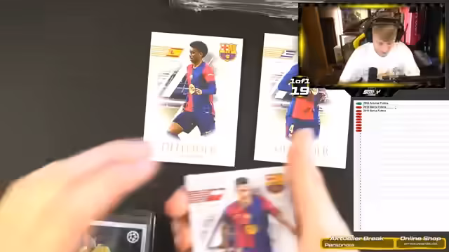 02:45:42Der Stream beginnt mit dem Öffnen eines Personal Box, die an Pau Kubas ging. Es wurden mehrere seltene Karten gezogen, darunter eine 'One of Seven' Karte. Im Anschluss folgte der Box Break für 'smexysyt', bei dem ebenfalls hochkarätige Karten gefunden wurden.其中包括一张 'Georginio Heritage' Karte zu einem Preis von 9, eine 'Emily Fox United States' One of 15 Karte zu 5 und mehrere nummerierte Karten. Es gab auch Patches, wie ein 'two of two' von Ricardo Calafiori und ein 'three of seven' von Frieda Mann. Ein ärgerliches Ereignis war das Ziehen von zwei identischen 'Anders Limper' On-Card-Autos, was den Streamer sehr frustrierte. Für den PSG 10 Boxer wurden noch fünf Plätze im Chat angeboten.