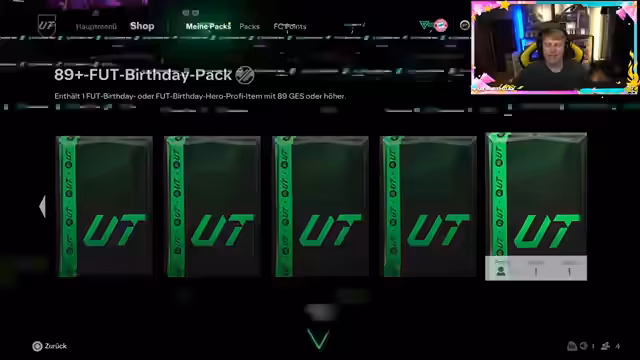 03:12:52Das neue Juventus-Trikot im Store wird als gelungen befunden. Der Streamer lädt dazu ein, ihn für garantierte Packs einzuladen und überlegt, ob Team of the Week noch interessant ist. Es wird festgestellt, dass einiges an Content gekommen ist, der erst noch verarbeitet werden muss. Eine 4er-Auswahl für 380 mit 84, 84, 85 Rating wird als teuer empfunden. Es wird überlegt, ob die SBC verpackt ist. Es wird festgestellt, dass man drei Food Birthday Karten abgeben muss, um einen 89+ Spieler zu bekommen, in der Hoffnung auf etwas Gutes. Es wird erwähnt, dass Heroes enthalten sind, aber keine Icons. Es wird ein Harry Maguire gezogen. Es wird erwähnt, dass man Spieler aus dem Speicher nehmen und wieder hinzufügen kann, um sie in die SBC einzufügen. Es wird überlegt, einfach mal ein bisschen rumzuprobieren. Es werden mehrere SBC Packs geöffnet, aber ohne großen Erfolg. Es wird sich über die Schwierigkeit beklagt, gute Karten zu ziehen, und die Hoffnung auf bessere Karten in der Zukunft geäußert.