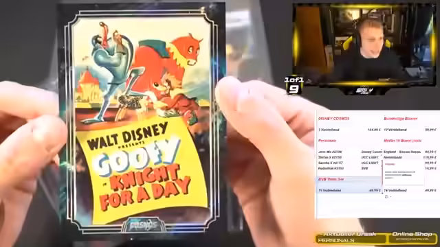 00:20:14Nach einigen technischen und organisatorischen Aspekten beginnt die Eröffnung einer Disney Cosmos Box. Der Streamer betont den hohen Nostalgie-Faktor und die preisliche Attraktivität der Produktreihe, die ein Drittel der Kosten einer Disney Chrom von Topps ausmacht. Die Box beinhaltet Base-Karten, Inserts, nummerierte Karten und ein Booklet. Besondere Highlights sind ein nummeriertes Insert von Pocahontas (171/188) und eine nummerierte Minimaus als Baseballspieler (50/188). Der Streamer zeigt Beispiele aus verschiedenen Disney-Franchises wie Moana, Monster AG und Die Eiskönigin und preist die hohe Qualität und die nostalgische Wertschätzung der Karten.