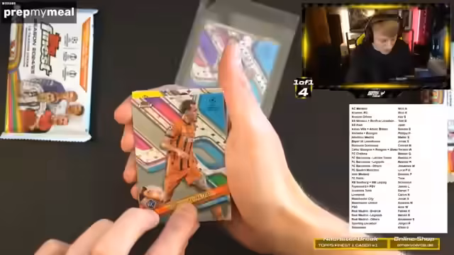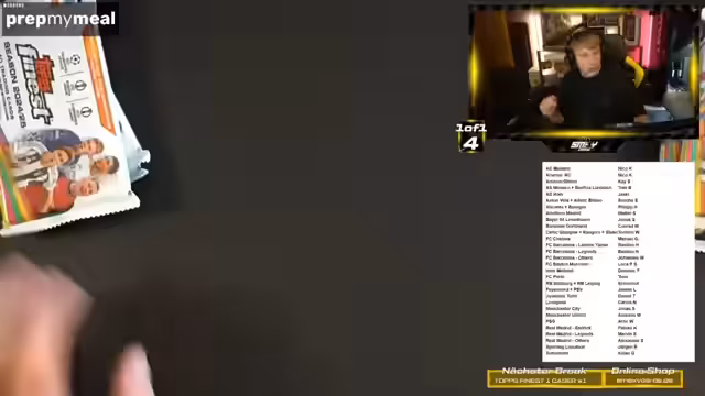 00:17:54Nach verschiedenen Ankündigungen und Grüßen beginnt der Stream mit der Eröffnung von 16 Kartenboxen der Marke Top's Finest. Es gibt verschiedene Spots für Teams wie Real Madrid, Arsenal und RB Leipzig. Der Streamer hofft auf gute Hits für die Teilnehmer und erwähnt die Möglichkeit, Teamsets zu erhalten.