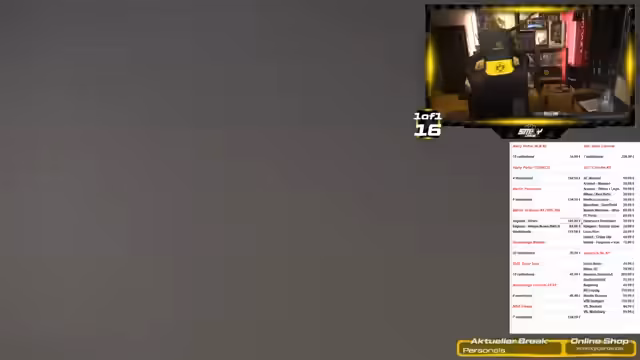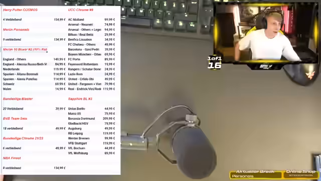 00:16:16Der Streamer präsentiert das aktuelle Sortiment, das unter anderem noch freie Spots in Merlin, Bundesliga Chrome, Harry Potter und Star Wars aufweist. Er kündigt an, dass die Breaks losgehen werden, sobald sie voll sind. Zuerst sind ausschließlich Personals an der Reihe. Er erwähnt auch, dass für den FC 26 Release ein Break geplant ist und bedauert, seine eigenen Spiele nicht vorbestellt zu haben.