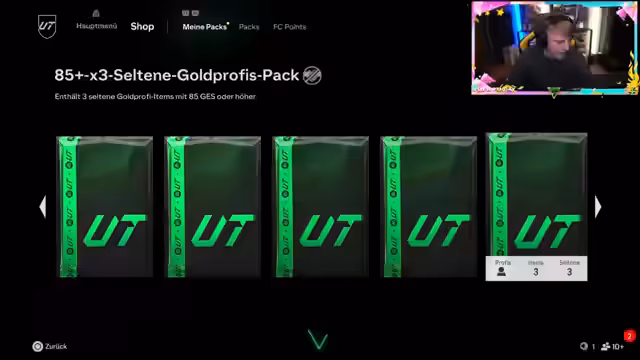 01:29:40Nach anfänglichem Zögern beginnt der Streamer mit den Pack-Öffnungen für das neue FIFA Birthday Team. Der Fokus liegt dabei auf dem Versuch, eine Fußball-Geburtstagskarte (Food Birthday Card) zu ziehen. Es wird eine Strategie verfolgt, zunächst kleinere Packs zu öffnen und dann zu den größeren 83er- und 85er-Packs überzugehen. Der Streamer zeigt sich enttäuscht über die Qualität der gezogenen Karten und gibt offen zu, dass die großen oftmals enttäuschend sind, während die kleineren Packs manchmal bessere Ergebnisse liefern. Das Ziel ist es, Karten zu ziehen, die für Special Player Challenges (SPCs) verwendet werden können.