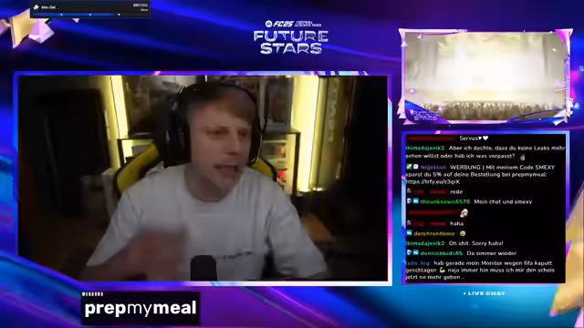 01:18:12Der Streamer bietet an, Accounts von Zuschauern zu übernehmen, die keine Lust mehr auf das Spiel haben, um dort Reviews zu machen und Inhalte zu erspielen, ohne Packs zu öffnen. Er betont, dass er alles erspielen würde und bietet an, die Wicked League zu spielen. Er spricht über die hohen Kosten für SBCs und die Menge an Karten, die dafür benötigt werden. Abschließend erwähnt er seine Partnerschaften für den Monat, darunter 'Störte Bäcker' für Bartpflege (mit dem Code SMAXI für 20% Rabatt), 'Surfshark' für VPN-Dienste (mit dem Code SMAXI für vier Monate gratis) und 'PrepMyMeal' für gesunde, proteinreiche Mahlzeiten (ebenfalls mit dem Code SMAXI).