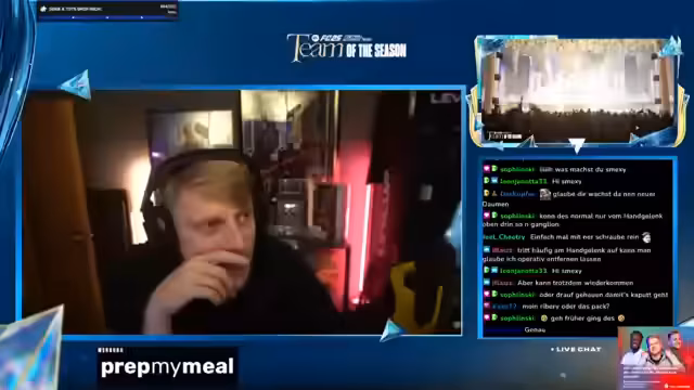 00:08:34Eine erste offene Diskussion über ein unangenehmes Gefühl im Handgelenk entsteht, was den Streamer nachdenklich stimmt. Er beschreibt es als Wassereinlagerung und fragt den Chat nach Erfahrungen. Anschließend nimmt er das Thema wieder auf und identifiziert möglicherweise ein Ganglion, eine Art gutartige Geschwulst, von der er hofft, dass sie operativ entfernt werden kann. Er erklärt, dass man das unbedingt vom Arzt abklären lassen sollte und nicht selbst darauf schlagen sollte.