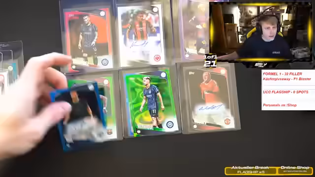 00:13:19Der Streamer geht ins Detail über die Organisation der Breaks. Er klärt, dass er nicht offizieller Partner von Topps ist, aber bei ihnen präsent war. Die Öffnung der Flagship-Blaster wird vorbereitet und es werden noch verfügbare Exemplare erwähnt. Zusätzlich wird die Vorverlosung einer unterzeichneten Gerd-Müller-Karte angekündigt, um die Follower zu danken und die Community einzubinden.