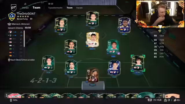 02:48:40Es wird ein Fünfmal-Pack geöffnet, wobei die Community auf mindestens zwei 92er-Karten oder höher wettet. Das Ergebnis ist jedoch enttäuschend, da hauptsächlich Futter gezogen wird, obwohl immerhin 14% der Wettenden richtig getippt haben. Es wird kurz auf die bevorstehende Werbung eingegangen und das Evo-Team gezeigt. Es wird über eine Zecke im Gesicht gesprochen. Es wird eine Team of the Week SBC gemacht und überlegt, welche Evo auf welchen Spieler angewendet werden soll. Es wird festgestellt, dass Hernandez eine gute Option wäre, da er zusätzliche Werte erhält. Es wird überlegt, ob Jude Bellingham als ZOM (Zentraler Offensiver Mittelfeldspieler) geeignet wäre und was man beim Griechen am liebsten isst. Es wird überlegt, ob man Girassi in eine Evo packen soll und festgestellt, dass man die Evo vielleicht gar nicht hätte machen brauchen.