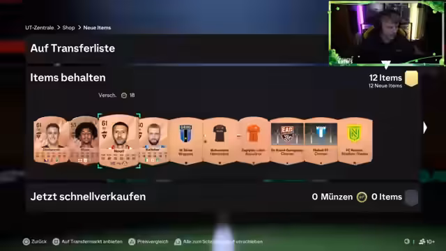 01:13:14Es wird geplant, Grassroots-Items ab 18:00 Uhr für 25.000 Münzen anzubieten und zu sehen, ob sie verkauft werden. Eine Beobachtung aus dem Chat besagt, dass Packs mit mehr als vier Spielern immer Münzen enthalten. Der Streamer plant, Bronze-Packs in der Web-App zu öffnen. Es wird diskutiert, ob Bay of M als Leitkarte Sinn ergibt, wobei der Streamer eher dagegen ist. Es wird erwähnt, dass der letzte Fütter-Saß von Milan und Max Brein 30k eingebracht hat. Der Streamer gibt seine Präferenzen für Courtois und Maradona auf bestimmten Positionen bekannt und äußert Interesse daran, wieder mit Heinrich unterwegs zu sein, obwohl er aufgrund anderer Projekte zeitlich eingeschränkt ist. Casillas wird nicht mehr als so stark empfunden. Es wird kurz die Web-App geöffnet, um die Bronze-Sachen wegzubekommen. Die Frage kommt auf, ob es eine ähnliche Aktion für Silberkarten geben wird. Es wird überlegt, Elektrom-Spielerpacks zu ziehen. Es wird über die SPC des Jahres diskutiert, wobei kein Tee und Bowie als mögliche Kandidaten genannt werden. Der Streamer plant, KT für den Füßchener Pirlo zu spielen, da er dessen Staubsauger-Effekt schätzt. Es wird überlegt, ob man den Olisee mal testen sollte. Es wird erwähnt, dass es eine Evo geben soll, wo anscheinend Kante und Mondi Grass Roots SPC reinpassen soll.