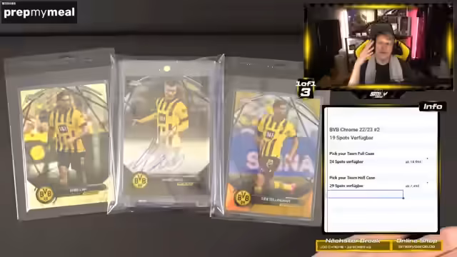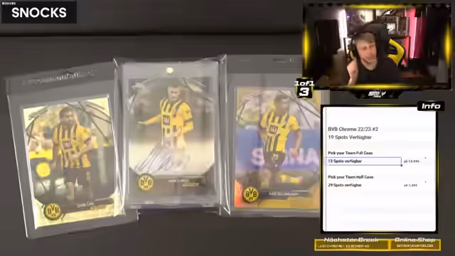 Ein besonderer Augenblick wurde im Rahmen eines Kartengbreaks erlebt. Es wurde ein limitierter BVB-Chrome-Koffer geöffnet, bei dem eine 'Emre Can One of One'-Karte entdeckt wurde, wovon es nur eine Exemplar auf der Welt gibt. Kurz darauf wurde zudem eine besonders seltene 'Jude Bellingham'-Karte aufgedeckt. Diese seltenen Ziehungen sorgten für große Begeisterung.
