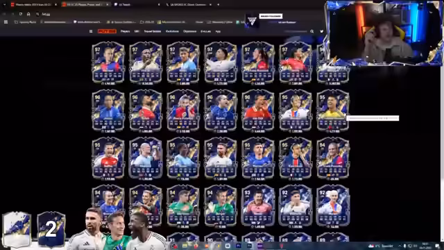 02:17:08Es wird eine Partnerschaft erwähnt und sich bei Zuschauern für Prime-Abonnements bedankt. Es wird nach dem günstigsten Ori gefragt und spekuliert, ob man sich in fünf Jahren mit 20 One of Ones von Reus sehen wird. Es wird sich für weitere Prime-Abonnements bedankt. Es wird sich darüber beschwert, dass die Web-App nicht richtig funktioniert. Es wird festgestellt, dass es zu viele Spieler auf dem Markt gibt und der Preis für Ori wahrscheinlich noch weiter sinken wird. Es wird sich bei Zuschauern für Abonnements und Bits bedankt. Es wird spekuliert, dass die Server wieder online gehen könnten und Panikverkäufe ausgelöst werden könnten. Es wird beschlossen, zuerst SBCs und Upgrades zu machen. Es wird erwähnt, dass man fast alle Traftspiele gemacht hat. Es wird sich darüber beschwert, wie langsam man bieten kann und dass man wahrscheinlich alle Spieler für 650 bekommen wird. Es wird erwähnt, dass zu viel geradeaus läuft und dass die Train-Gruppe erfolgreich war, aber es keine 100% gibt. Es wird gesagt, dass man verstanden hat, dass die Web-App scheiße ist, aber man nichts dafür kann.