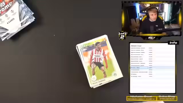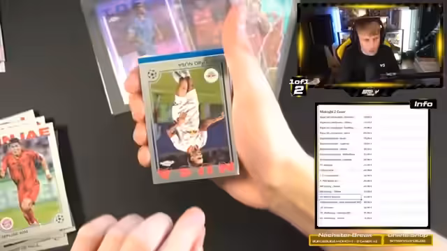 01:40:49Es werden noch nummerierte Karten, darunter eine Auto-Karte von Carter Vickers, sowie Spieler wie Manuel Neuer, Sunset Kevin und Pau Kubasi erwähnt. Der Streamer zeigt sich beeindruckt von einer Rookie Road to Munich-Karte von Konrad Harder und enthüllt einen Robert Lewandowski Pull zu 10. Weitere Pulls, eine neue Midnight Box und eine Shadow Edge Van Dijk zu 75 werden vorgestellt, die die Begeisterung des Streams widerspiegeln.