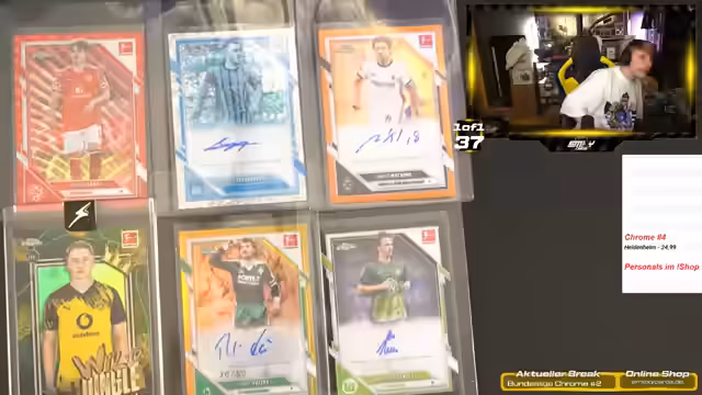 00:15:05Der Streamer erklärt seine Preistransparenz für den Bundesligachrome-Event. Er will mit seinen Partnerpreisen Schritt halten, was bedeutet, dass einige Spots teurer sein könnten als bei anderen Anbietern. Sein Ziel ist jedoch, dass alle Teilnehmer ihre Karten erhalten. Zudem ist er für eine Messe bei Topps in Berlin vorbereitet und sucht nach Ideen, welche Boxen er mitnehmen soll. Er erwähnt auch den möglichen Verkauf eines Mini-Boxen-Lagers und plant, in seiner neuen Wohnung ein Trade Night oder ein Sommerfest zu veranstalten.
