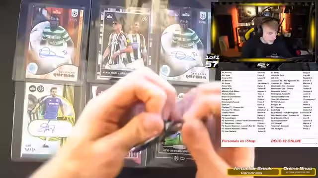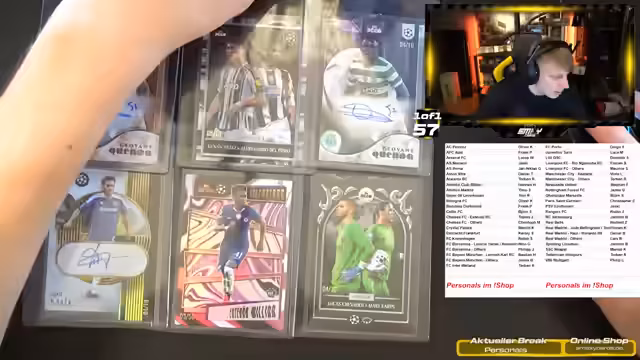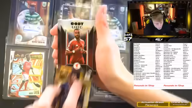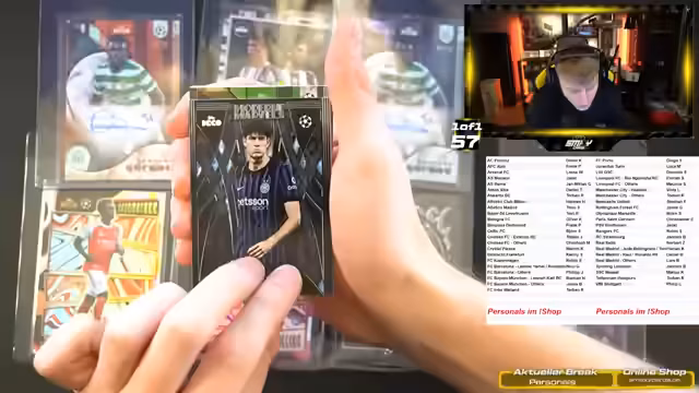 00:11:34Es werden geöffnete Personal Boxes (individuelle Bestellungen) angekündigt, insbesondere mit Zuschauer Philipp für Liverpool-Karten. Zusätzlich wird die Öffnung von Real Madrid Collector Boxes und drei Stromberg Boxes (für Florian) geplant. Es wird klar kommuniziert, dass der Deko-Break folgen wird. Der Fokus liegt auf der Umsetzung der Kooperationen und der Zusammenarbeit mit bestimmten Zuschauern.