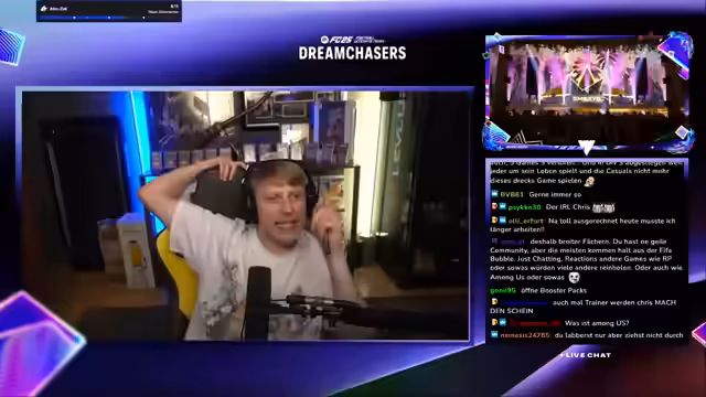 02:05:12Es wird über andere FIFA-Streamer gesprochen, wobei Faro für seinen Hype um neue Leaks beneidet wird. Der Streamer selbst verspürt diesen Hype nicht mehr und bevorzugt Just Chatting, da es mehr Spaß macht, mit den Zuschauern zu interagieren. Es wird festgestellt, dass in zwei Stunden mehr von der eigenen Persönlichkeit gezeigt werden konnte als in zehn normalen FIFA-Streams. Der Fokus liegt nun darauf, einen breiteren Fächer anzubieten und die Community außerhalb der FIFA-Bubble kennenzulernen. Es wird erkannt, dass man sich in der Vergangenheit bereits verbessert hat, indem man andere Spiele wie Headquarters Legacy oder Assassin's Creed gespielt hat, aber es dennoch zu wenig ist.