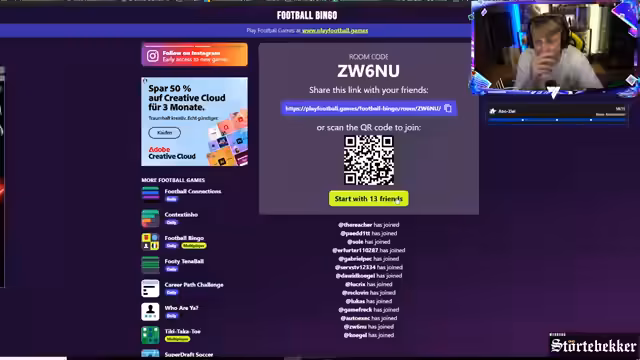 Teilnahme am Football-Bingo und Chat-Interaktion