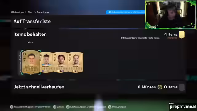 00:41:54Der Streamer öffnet verschiedene Spielerpakete und zeigt die Ergebnisse, die weit hinter seinen Erwartungen liegen. Er erwähnt seine Strategie für die SBCs (Squad Building Challenges) und möchte möglichst wertvolle Karten ziehen. Er äußert sich frustriert über die durchschnittlichen Ergebnisse und zeigt, dass sein Anspruch an die Karten mittlerweile gesunken ist. Gleichzeitig plant er, die Karten gezielt für bestimmte SBCs zu verwenden.