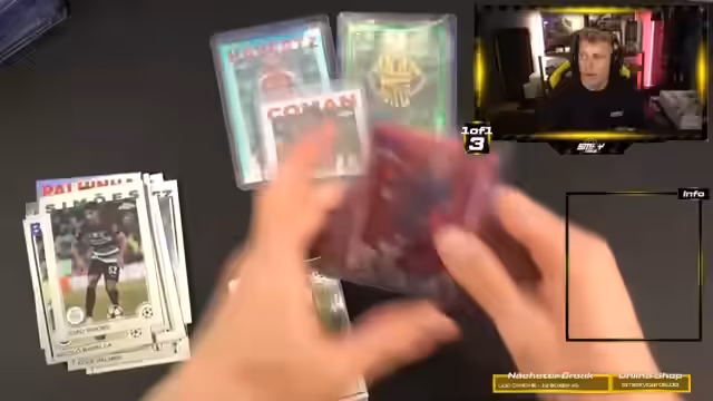 03:18:56Die Öffnung der UCC-Chrome-Kisten endet mit einem Highlight: dem Erhalt einer Matthäus-Karte zu 75 sowie weiterer wertvoller Karten. Zwar fehlte das letzte Base Auto, doch trotz Pilles Enttäuschung über einen geringen Gewinn zeigt sich der Streamer dankbar. Die Verlosung der unerwünschten Base-Karten für einen guten Zweck in Chemnitz wird angekündigt.