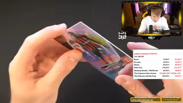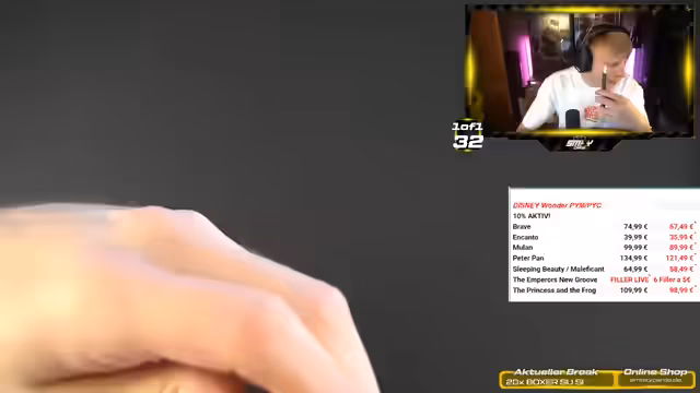 01:43:39Plötzlich wechselt der Stream-Thema komplett und geht zu Disney Wonder über. Der Streamer erwähnt, dass es nur noch fünf Plätze für die Disney Wonder Boxen gibt, die mit 10% Rabat angeboten werden. Es werden verschiedene Disney-Charaktere wie Peter Pan, Pinocchio und Brave erwähnt. Gleichzeitig wird darauf hingewiesen, dass es sich um Glücksspiel handelt und man ein Budget festlegen sollte. Der Streamer betont, dass das Sammeln von Karten Freude bringen soll und nicht um finanziellen Gewinn gehen sollte.