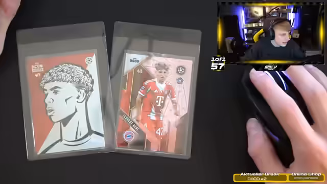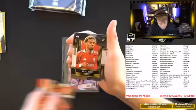 01:55:32Es erfolgt die Veröffentlichung von Basketball-Karten, darunter Spieler wie Jay Morant, Cooper Fleck und Nikola Jokic. Dabei werden Hits wie James Kobe Wright und Anthony Mobile Name Parts gezeigt. Der Streamer bedankt sich für den starken Support der Community in Bezug auf Zuschauerzahlen und Chat-Aktivität. Zudem wird die hohe Nachfrage nach NBA-Karten thematisiert, wobei auf die Preisentwicklung von Hobby-Boxen eingegangen wird, die teilweise über 400 Euro liegen.