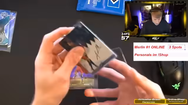 00:30:08Es folgt die Live-Öffnung der HSV-Boxen mit Highlights wie einem Dual-Autogramm von Luka Wuskowitsch (#25/35) und weiteren nummerierten Karten. Der Streamer zeigt sich beeindruckt von der Qualität und Chase-Potenzial der Karten. Zwischendurch wird auf die baldige Verfügbarkeit von NBA Chrome Blaster-Boxen hingewiesen. Merlin Hashtag 2 wird als nächster Drop nach den HSV-Boxen angekündigt, mit Vorverkaufsrecht für aktive Streamsupporter.