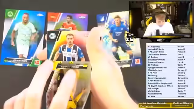 00:09:05Der Streamer äußert große Vorfreude auf die Bundesliga Inception Serie und spekuliert über die Preise, die zwischen 200 und 250 Euro liegen könnten. Da es sich um ein On-Demand-Set handelt, könnten die Preise aber schnell auf 300 Euro steigen. Er betont, dass die Serie in Deutschland extrem beliebt sein wird und empfahl den Chat, sich frühzeitig anzumelden. Eine Zusammenarbeit mit Topps wird als notwendig angesehen, um genügend Exemplare zu erhalten.