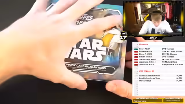 02:24:42Neben dem PSG-Box-Opening präsentiert der Streamer eine Vielzahl anderer Produkte im Shop. Dazu gehören Produkte aus den Serien Disney und Harry Potter mit Postern und Sammlerstücken, sowie die Themen Basketball und Star Wars. Der Streamer erwähnt auch die Bundesliga Chrome Lightstar Serie und kündigt an, die Shop-Inhalte um weitere Artikel zu erweitern, insbesondere für die bevorstehende Veröffentlichung von FC 26. Der Fokus liegt dabei auf dem Support der Community und der Freude am Sammler-Hobby.