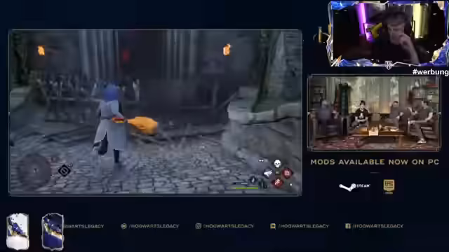 01:21:43Ein entscheidender Wechsel im Streaminhalt wird angekündigt. Zusammen mit Warner, Avalanche und dem Spiel Hogwarts Legacy wird ein gemeinsamer Special-Stream gestartet. Die Ankündigung bezieht sich auf die offizielle Einführung des legalen PC-Moddings, das es Spielern ermöglicht, Charaktere wie Dumbledore zu reiten, eigenen Dungeons zu erstellen und im Spiel mit Drachen zu fliegen. Diese Kooperation und die neuen Möglichkeiten im Spiel werden als extrem geil und aufregend bezeichnet.