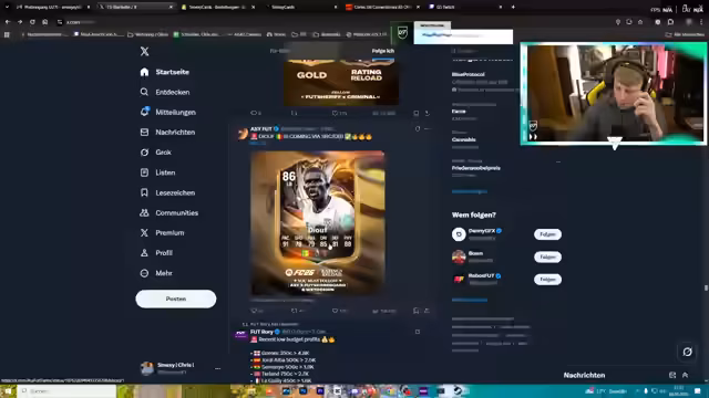 01:31:19Der Streamer spielt FIFA Rivals und öffnet Packs, wobei er über leere Eikos spricht und diese auflädt. Er diskutiert Verkäufe, Bewertungen und Trading-Aktivitäten, einschließlich des Versands von Karten zur PSA-Bewertung. Leaks zu neuen Evolutions werden vorgestellt, wie Tiki-Taka Plus, ZDM, DLPM Plus Plus und Silver Warm-Up. Außerdem werden Investitionen in Spieler wie Kane und das Upgrade von Olysee mit neun Pace besprochen. Das Gameplay umfasst Match-Beschreibungen und die Diskussion von Karten wie Anna Güler und Alvarez, wobei Stats und Playstyles bewertet werden.