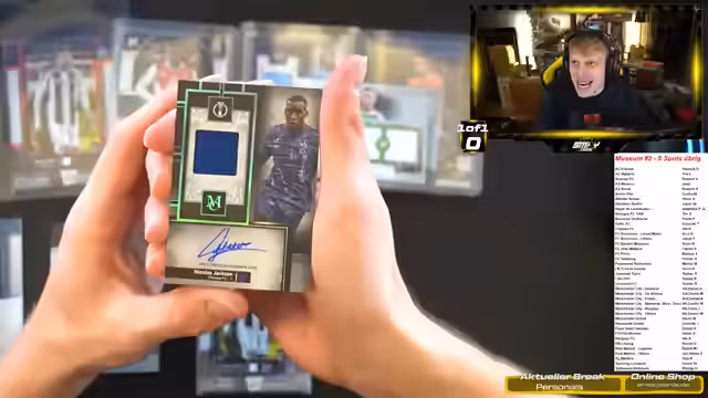 02:16:01Mit der Eröffnung des zweiten Cases, Case Nummer 2, geht der Stream weiter. Es werden sofort wieder viele Rookie-Karten vorgestellt, unter anderem von Hendrik für Real Madrid und Frankie de Jong. Ein besonderer Augenmerk liegt auf dem Finden einer extrem seltenen 'Showpiece Signatures'-Karte, die alle 5 Cases in einer Box ist. Mit Spannung wird erwartet, welcher Spieler auf dieser Karte zu sehen sein wird. Gleichzeitig werden die ersten nummerierten und Patches für die jeweiligen Spots gezeigt und vergeben.