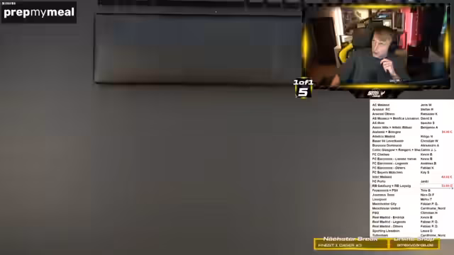 01:58:15Die letzten beiden Boxen des Finest Cases werden in China aufgegeben. Der Streamer ruft dazu auf, Kontakte nach China zu haben, um an solche Boxen zu gelangen. In der vorletzten Box wird Karim Konaté zu 250 für RB Salzburg gezogen, in der letzten Box Kenan Yildiz zu 199 für Juventus. Nachdem das Case offiziell beendet ist, erfolgt eine ausführliche Zusammenfassung aller Hits, darunter Lamin zu 50, Gavi zu 75, Bruno Fernandes zu 25 und Musiala zu 99. Der Streamer startet parallel den neu angekündigten Bundesliga-Chrom-Break, der sehr schnell ausverkauft ist und die hohe Nachfrage unterstreicht.