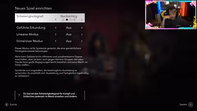 00:40:19Nachdem die FIFA-Aktivitäten abgeschlossen sind, wechselt der Streamer zu 'Assassin's Creed Shadows'. Er erklärt, dass er sich bewusst nichts zum Spiel angesehen hat, um eine neutrale und spoilerfreie Ersterfahrung zu haben. Das Spiel spielt im Japan des Jahres 1599 und lässt die Spieler zwischen den Protagonisten Yasuke, einem mächtigen Krieger, und Naoe, einer Shinobi, wählen. Der Stream startet einen neuen Spielstand.